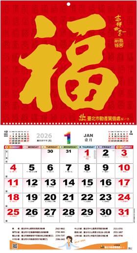 【記者洪俐婷/綜合報導】臺北市政府財政局所屬動產質借處,為迎接馬年到來,將於114年11月17日起在動質處所屬6家分處及財政局支付科,免費限量發送「2026燙金福字」月曆,祝福市民朋友馬上幸福、馬上有錢、馬年行大運,財源滾滾來。 動質處為臺北市政府直營的公營當舖,依當舖業法規定經營自負盈虧,不得仰賴市府編列預算補貼,但仍提供低利率緩解民眾緊急資金需求。另為照顧弱勢族群,實施差別優惠利率,臺北市弱勢族群之質借月利率為0.36%、臺北市民0.58%、一般民眾0.68%,質借利率為全國當舖業最低,是民眾資金週轉的最佳管道。 動質處進一步表示,該處自97年起陸續設置各項祝福金,有求職、職訓、成績優良、成績進步、康復及新生兒等6大祝福金,每年發放金額近百萬元,除肯定客戶奮發向上精神,並落實實質回饋客戶。 動質處印製「2026燙金福字」月曆,與民眾攜手迎新春,祝福民眾一馬當先、接力馬年,福氣連連,好運財富接連來。月曆每人限領1份,數量有限,送完為止,歡迎至動質處各分處及財政局支付科領取。