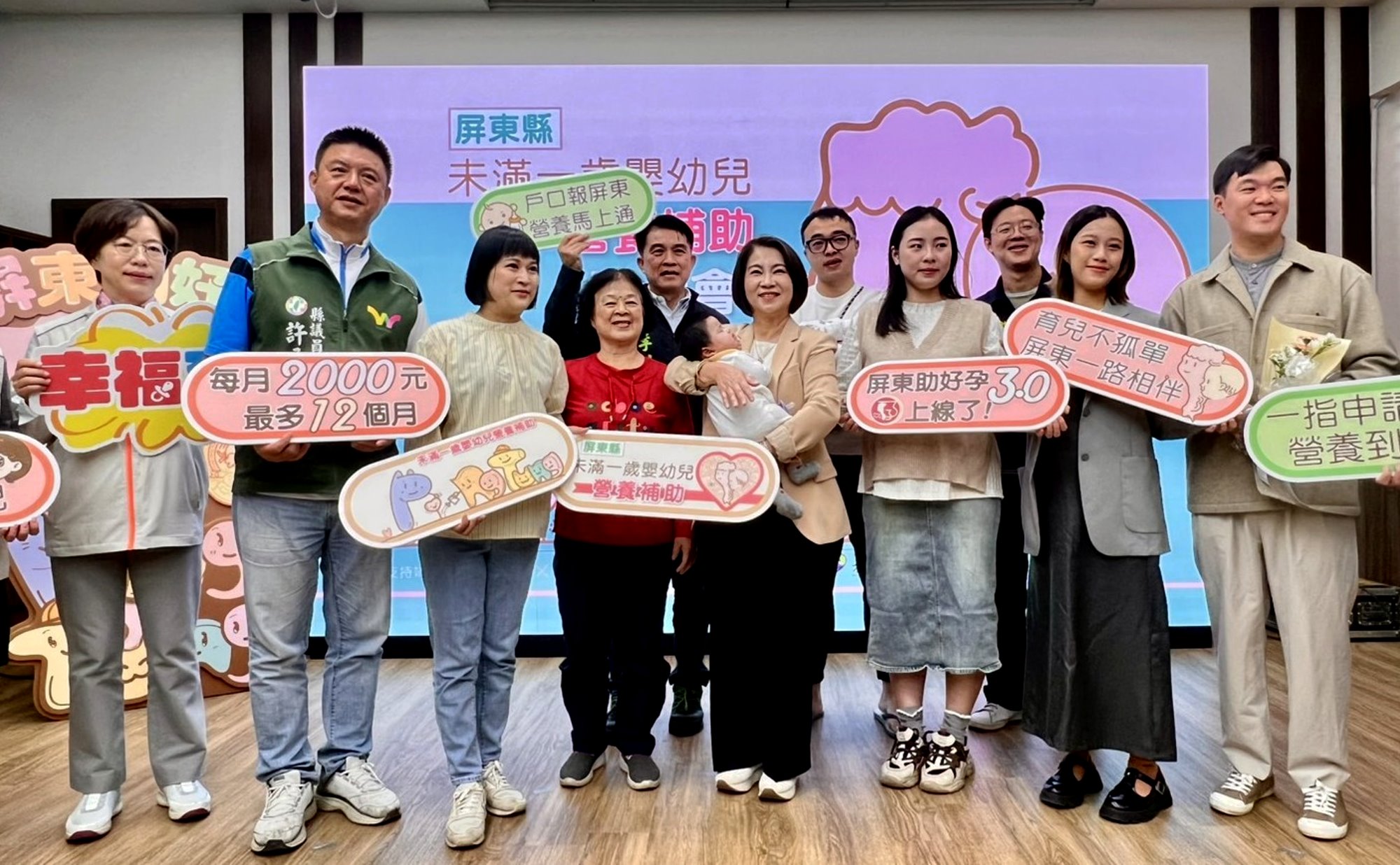 【記者黃秀慧/屏東報導】為減輕家庭育兒負擔並促進嬰幼兒健康成長,縣長周春米16日舉辦「未滿一歲嬰幼兒營養補助」記者會,宣布凡114年1月後出生、首次設籍屏東,且父或母於嬰幼兒出生當日設籍滿一年者,可申請每月2,000元、連續12個月補助,共計2萬4,000元,預計每年約有4,000名嬰幼兒受惠,並自115年1月起開放於「屏東縣便民服務平台」線上申請。