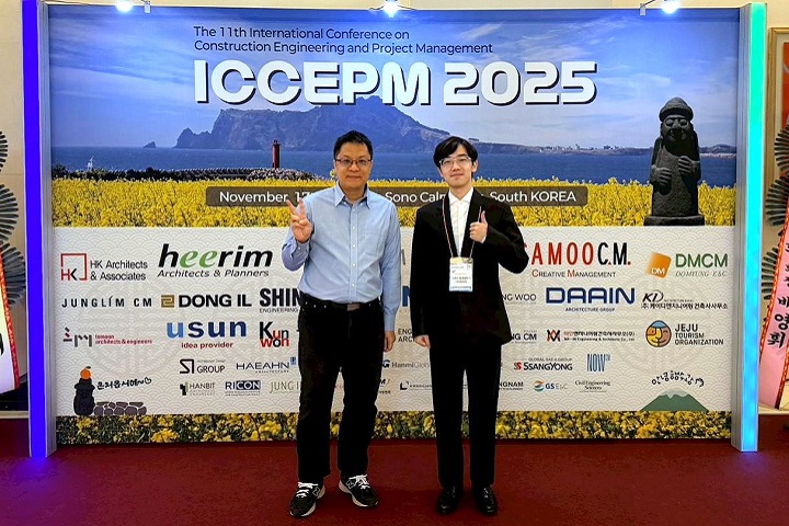 【記者元康/新竹報導】中華大學土木工程學系傳捷報!在周宏宇老師指導下,碩士生黃煒翔與博士生魏宇德赴韓國濟州參加「第11屆國際建設工程與專案管理研討會」(ICCEPM 2025),以道路工程減碳研究成果榮獲 Runner-up Paper Award,在全球103件投稿中脫穎而出,為校爭光,更肯定學生的專業實力。 魏宇德表示,這次國際交流讓他深刻體會學術與產業的連結,並啟發後續研究思路。「能在全球舞台分享成果,並獲得肯定,是對我們努力的最佳回報。我希望未來能將這套架構擴充至更多工程案例,讓研究真正落地,為淨零轉型貢獻力量。」 黃煒翔則分享,研究過程最大的挑戰是蒐集道路工程碳排數據,因資訊分散且缺乏標準格式,他花費大量時間訪談專業人員並進行多輪交叉驗證,最終成功將零散資訊轉化為系統化參數,並建立精準模型。「這段過程雖然艱辛,但讓我在國際發表時能自信回應提問,也更清楚自己的研究定位與未來方向。」 指導老師周宏宇指出,獲獎顯示學生具備將複雜問題轉化為清晰方法並落實應用的能力,研究成果更有望成為支援公共工程治理與淨零轉型的實務工具。 本次獲獎論文題為《Developing a Carbon Emission Assessment Framework for Road Engineering Using Material Flow Analysis》,研究結合物質流分析(MFA)與 STAN 模型工具,建構系統化、量化且視覺化的道路工程碳排放評估架構,突破傳統僅依排放係數估算碳足跡的限制,並以真實工程案例驗證,精準呈現施工與維護階段碳排構成,協助辨識碳排熱點,為營建產業減碳策略提供科學依據。