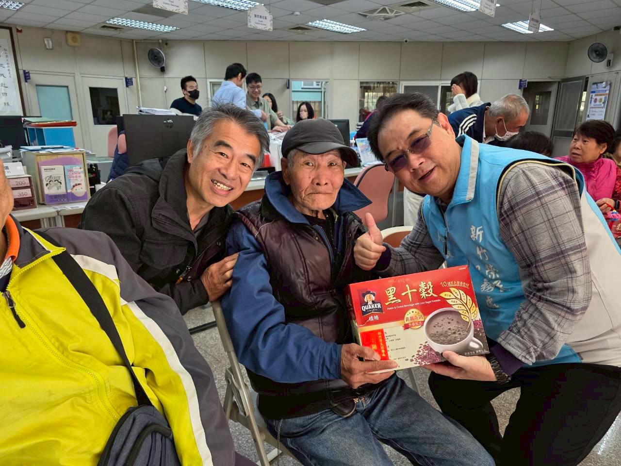 新竹榮服處處長鞠宗顯(右)致贈榮民(眷)長輩年節慰問品。