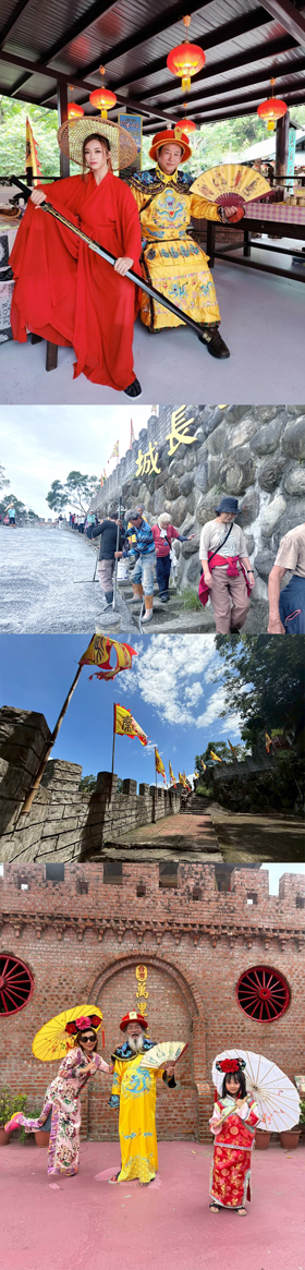 圖1:復古電影老街-俠客或皇帝古裝拍照。(記者徐正郎攝) 圖2:白河萬里長城也能體驗登長城的趣味。(記者徐正郎攝) 圖3:仿古建築間-萬里長城步道。(記者徐正郎攝) 圖4:宛如走入古裝劇場景-古裝拍照體驗。(記者徐正郎攝)